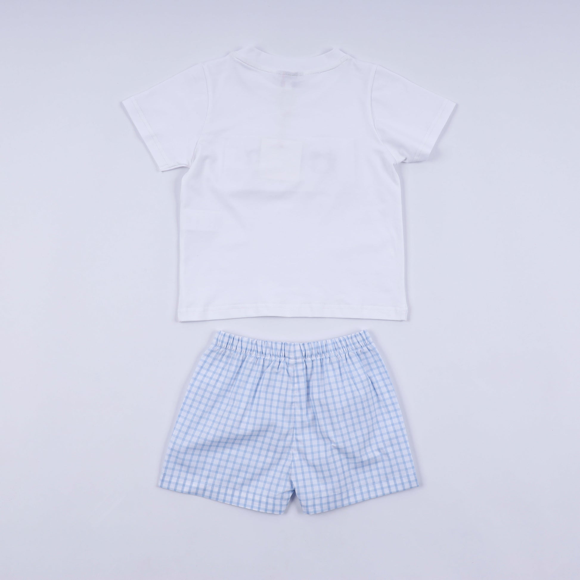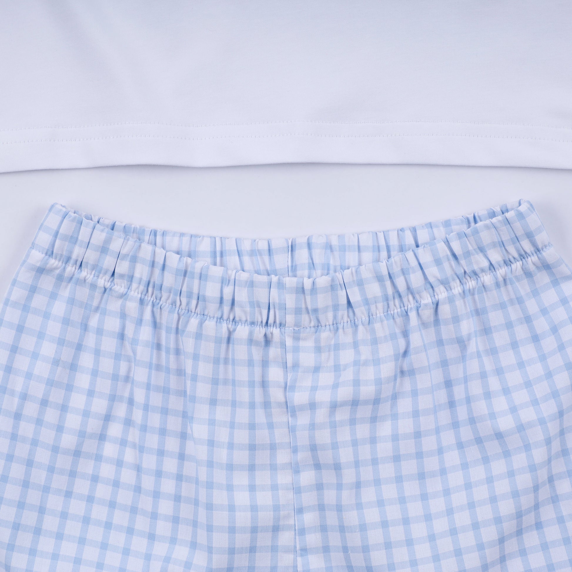Adorable two-piece set featuring charming character appliqués paired with hand-smocked detailing on soft gingham shorts. The playful design combines classic smocking techniques with whimsical character accents, creating a timeless look perfect for little ones. Lightweight gingham fabric keeps things cool and comfortable, while the coordinated pieces make getting dressed fun. Ideal for playdates, casual outings, or everyday wear that brings personality and charm to any wardrobe.