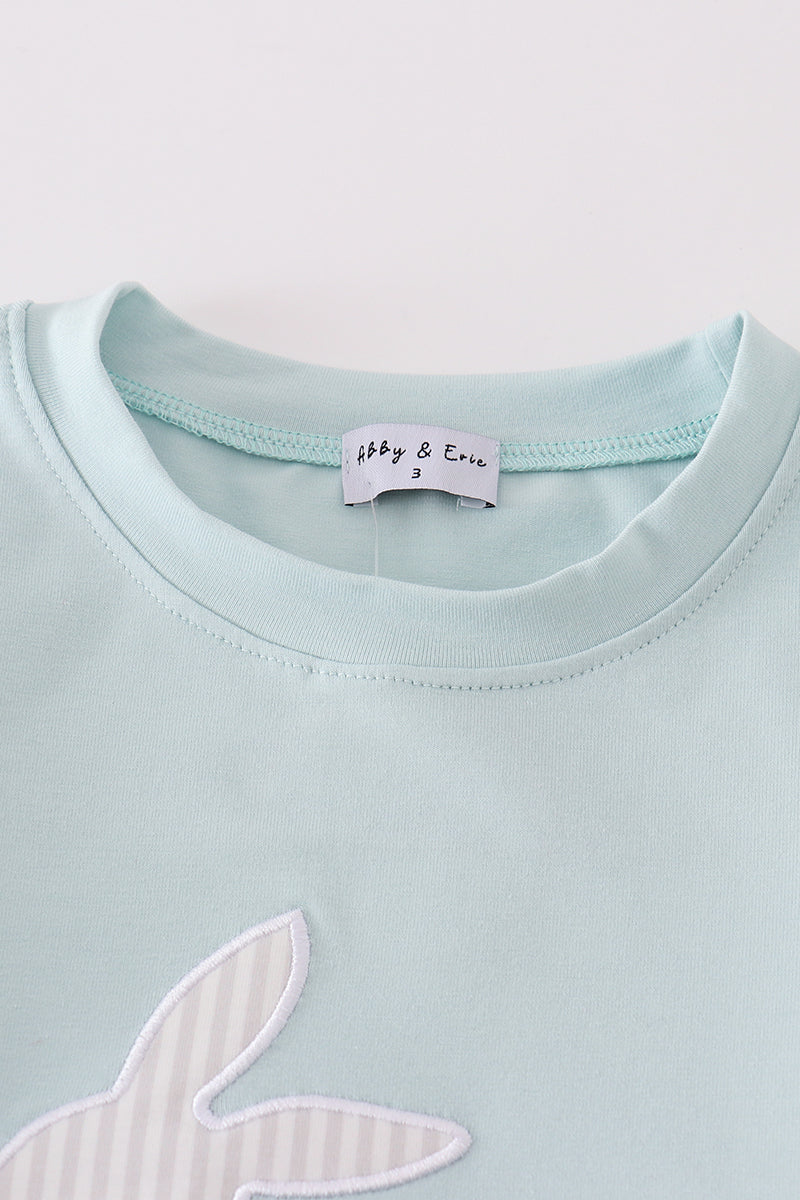 Hop into spring with this charming Blue Easter Bunny Applique Boy Set! Made with soft fabric, this set includes a cozy blue shirt featuring a playful bunny applique and matching bottoms. Perfect for Easter egg hunts and every day wear.
