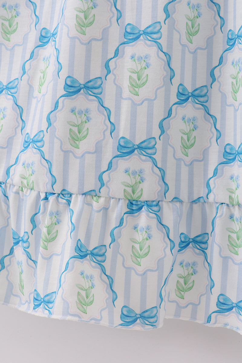 Get ready to channel your inner flower child with our Blue Floral Bow Tie Strap Mom Dress! This dress, with its delicate floral print and playful bow tie straps, will have you feeling like a free-spirited momma in no time. Made with lightweight fabric to keep you cool and comfortable all day long, this dress is perfect for any occasion. So go ahead, embrace your wild side and rock this dress with confidence!