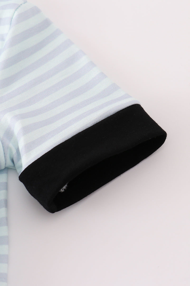 Blue Halloween spider embroidery stripe romper
