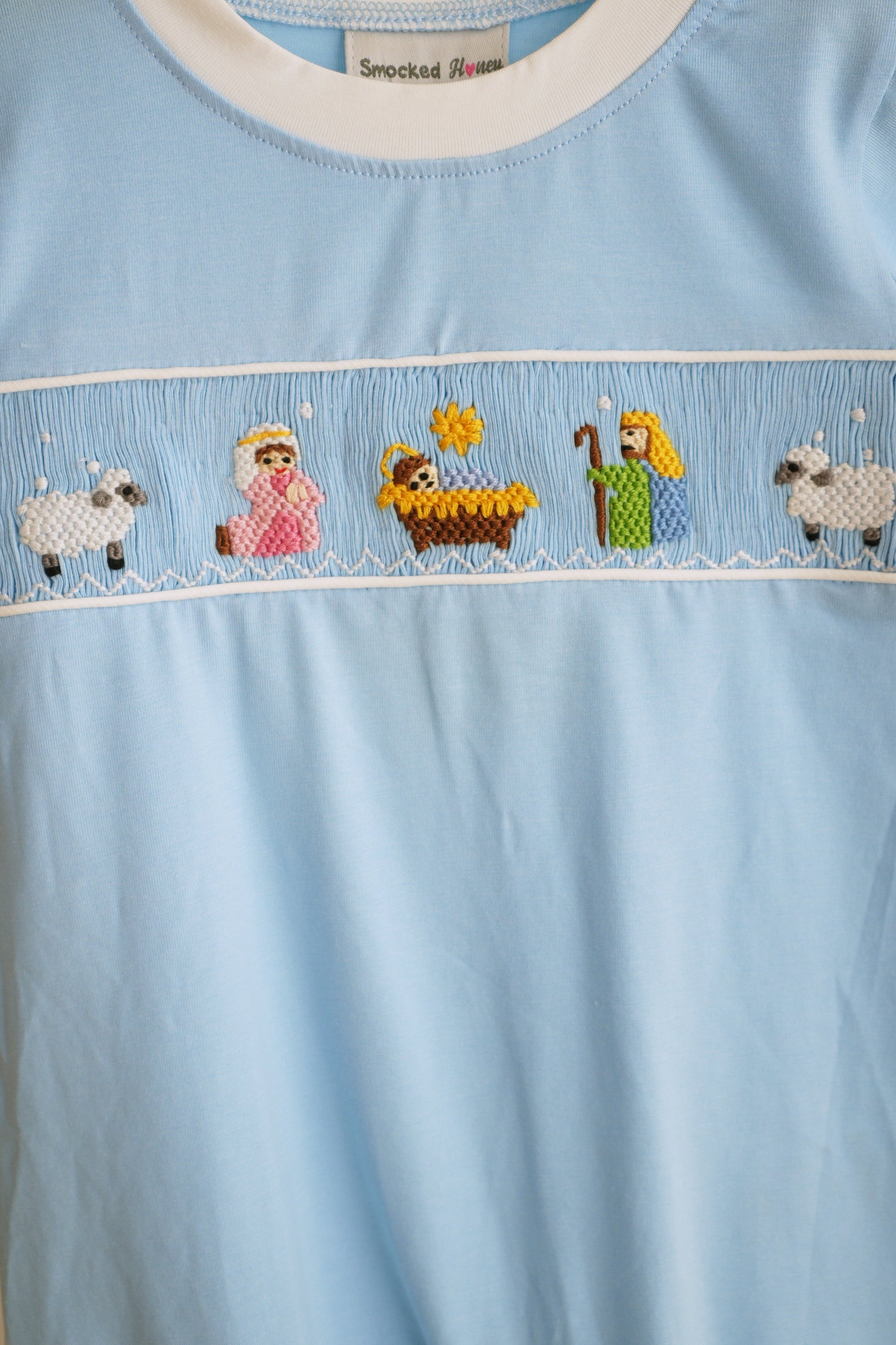 Blue nativity hand smocked romper