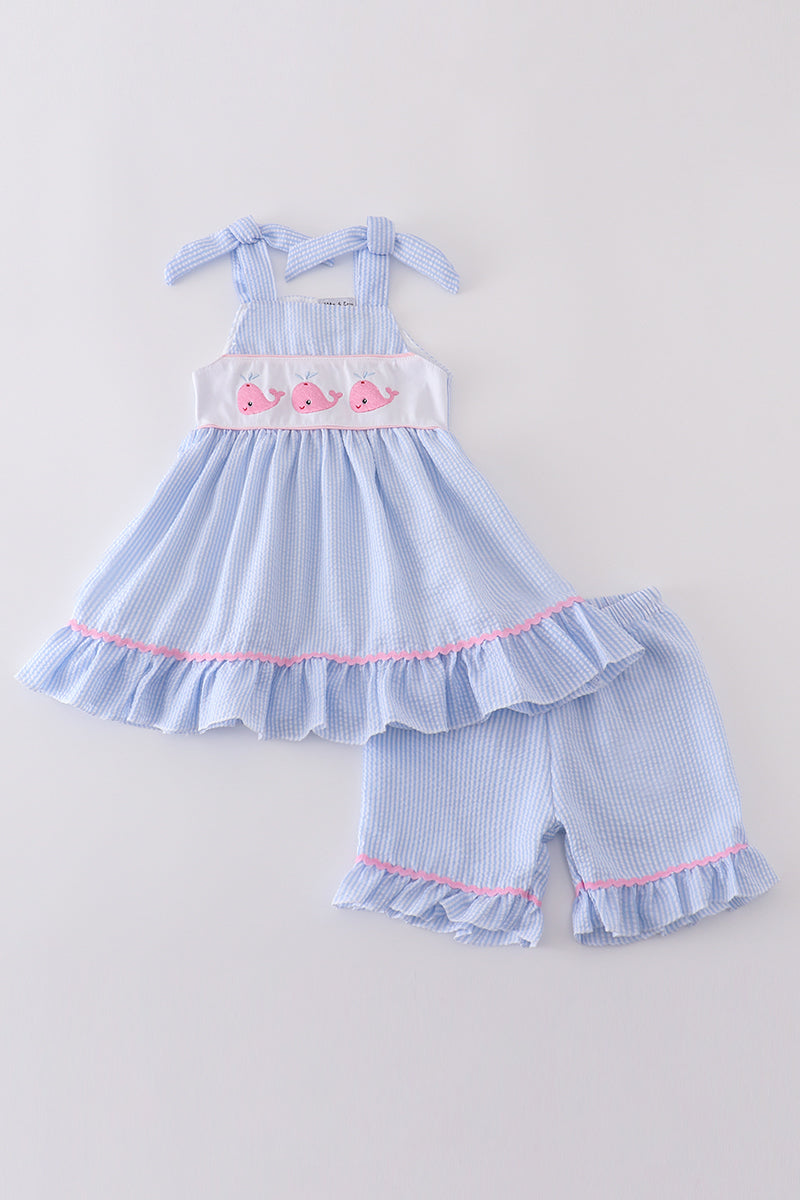 Add a touch of whimsy to your stitching with our Blue Seersucker Whale Embroidery Set. Featuring a charming whale design, this set is perfect for adding personality to any project. Dive into the fun and creativity with this unique set!