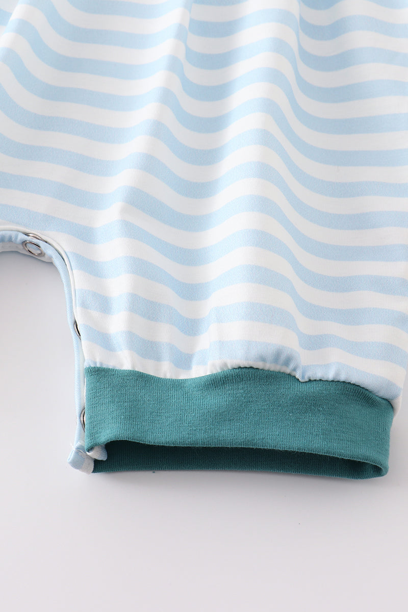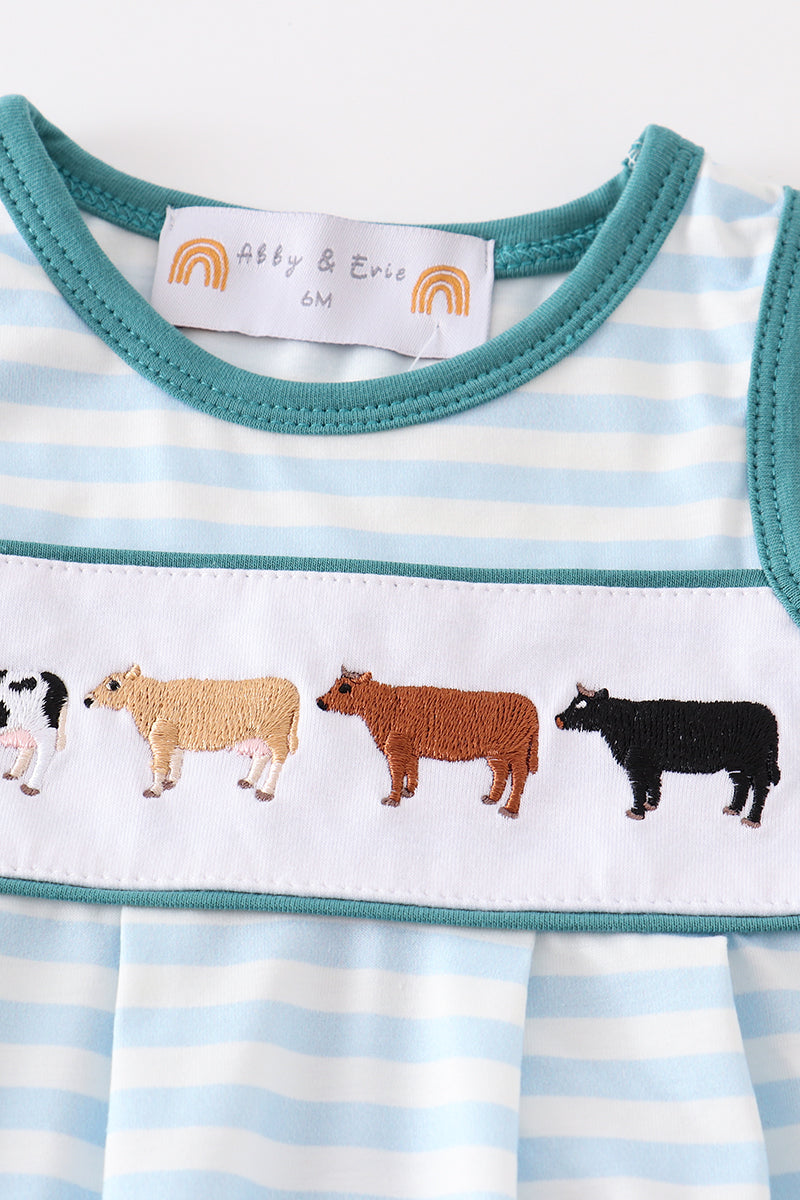 Get ready to mooooove in style with our Blue Stripe Cow Embroidery Boy Bubble! Featuring playful cow embroidery on a timeless blue stripe pattern, this bubble will bring a smile to your little one's face. Made with high-quality materials for comfort and durability. Yee-haw!