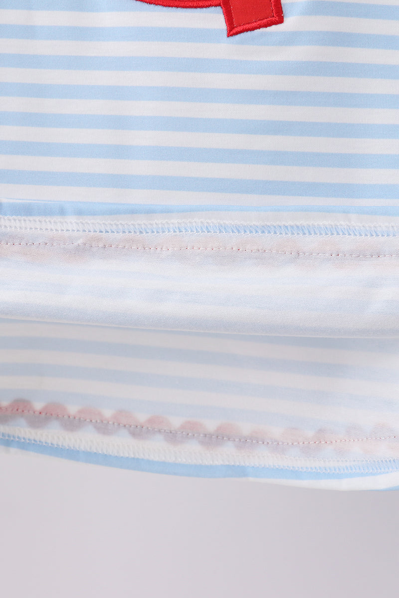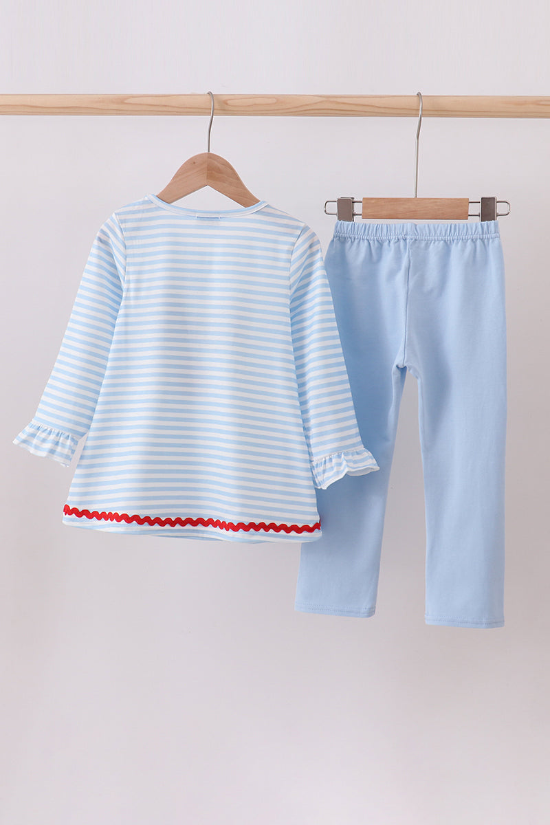 Blue stripe reindeer applique ruffle pants set