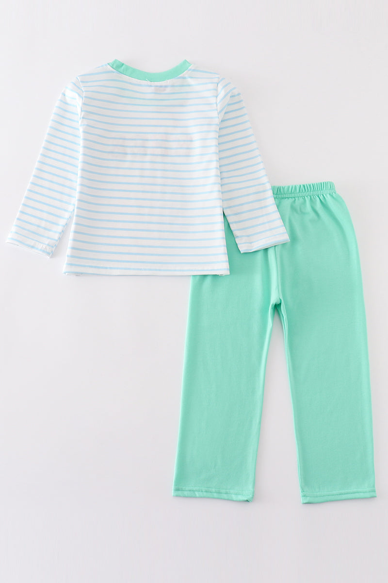 Green farm animals embroidery boy set