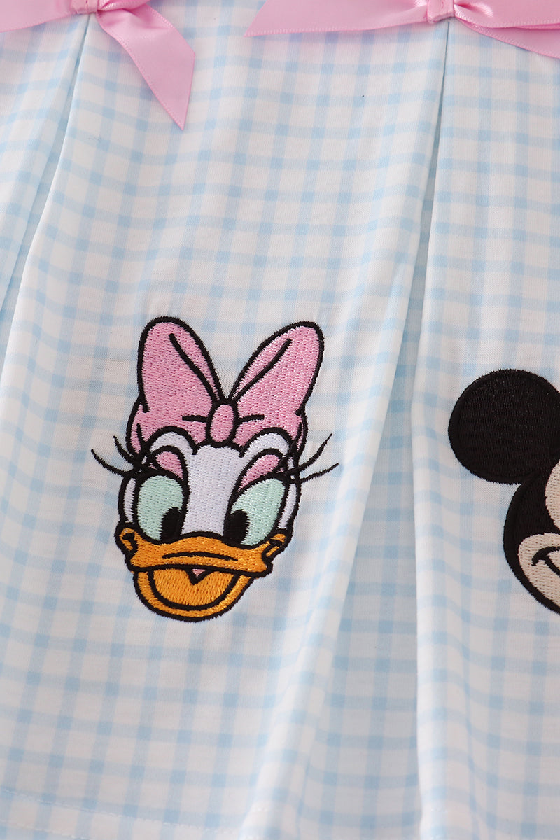 Pink character embroidery ruffle pants set