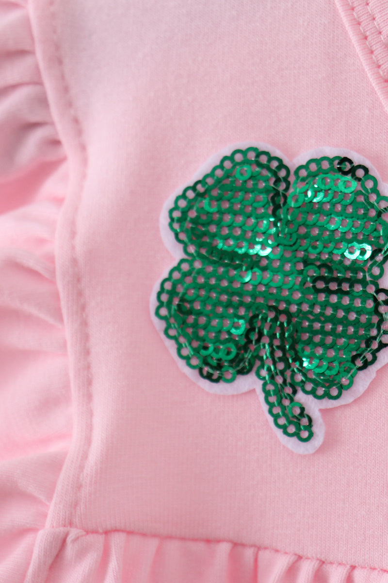 Twirl into the spotlight in this enchanting pink clover sequin ruffle tiered dress! Shimmering sequins catch the light with every movement, while delicate ruffles cascade down in tiers for a whimsical, dimensional silhouette. Perfect for celebrations, parties, or whenever you want to add a touch of sparkle and fun to your day. The playful design brings joy and confidence to any occasion.