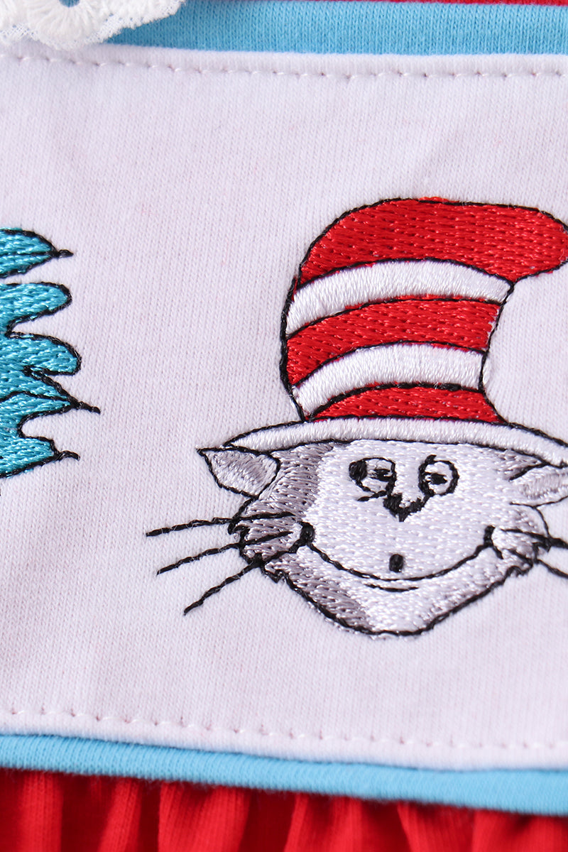 Red character embroidery bow dress