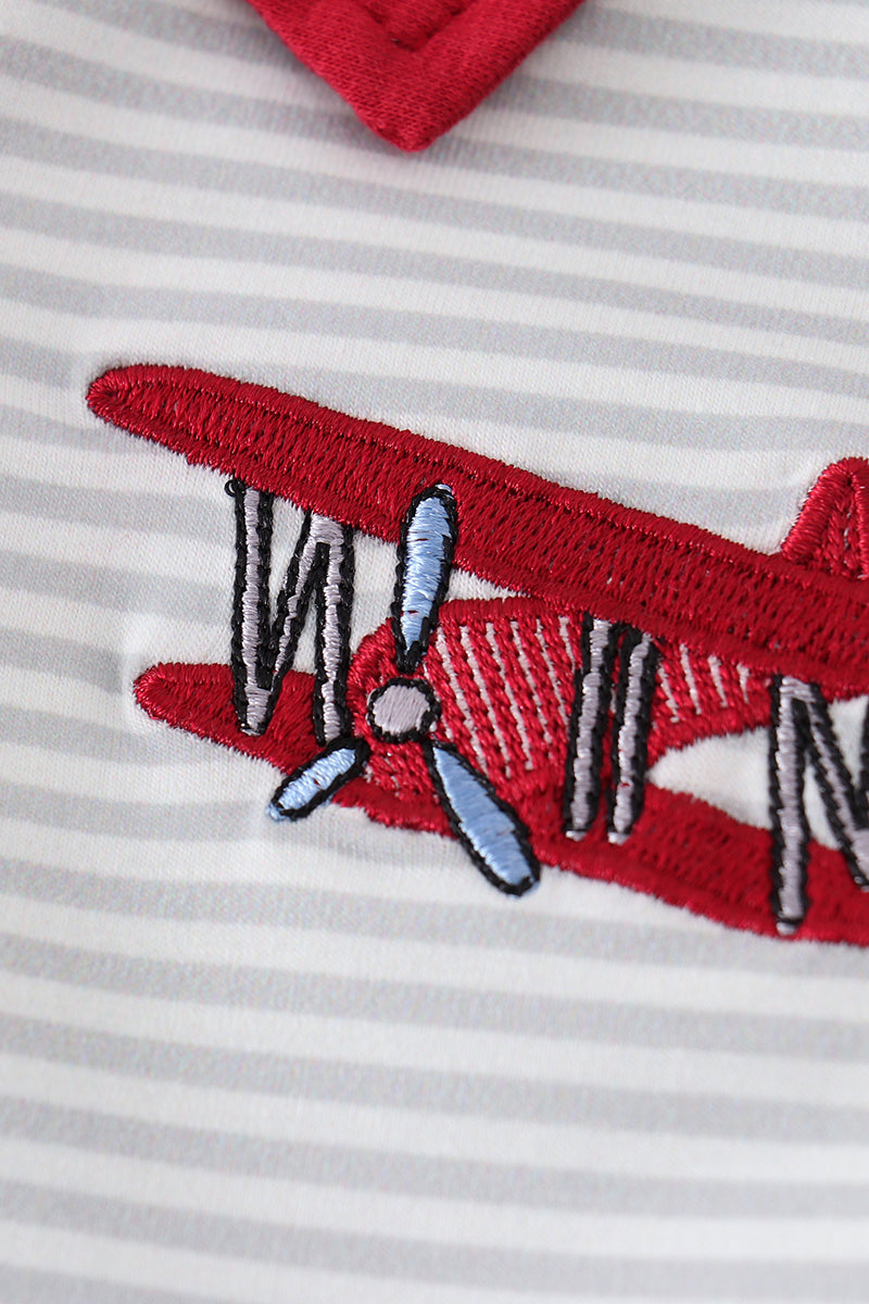 Get ready to take off in style with our Sage Stripe Plane Embroidery Boy Shirt! This quirky and fun shirt features a playful sage stripe design with airplane embroidery, perfect for any little adventurer. Made with high-quality materials, your little one will feel comfortable and stylish all day long. Ready for takeoff? Let's go!
