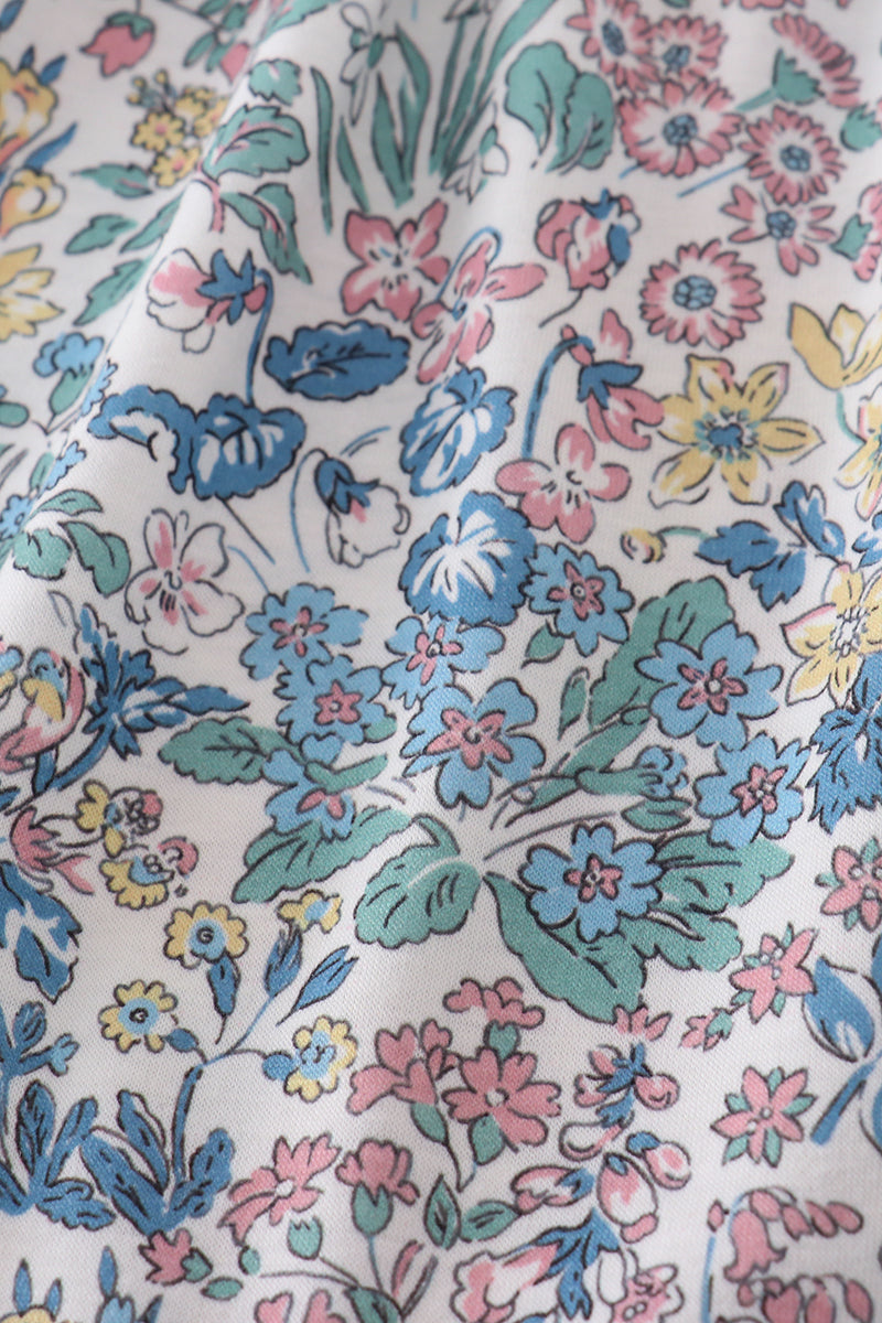 Vintage meadow print bow shorts set